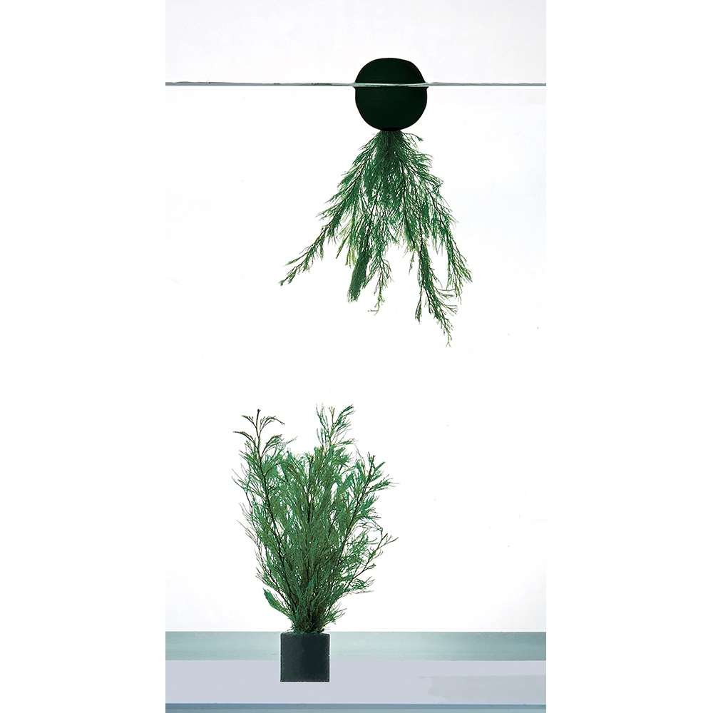 ・浮き玉を取り付けて浮かせたり、沈めて水槽内を手軽に飾れる2WAY式の天然水草です。おもりは魚に安心な陶器製です。