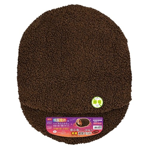 シープボア生地(ブラウン)のオーバル型寝袋ベッド。