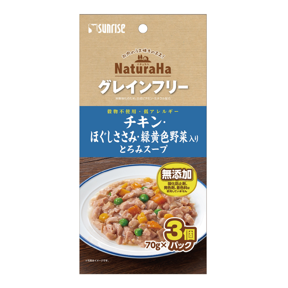 ナチュラハグレインフリーチキン・ほぐしささみ・緑黄色野菜入り とろみスープ